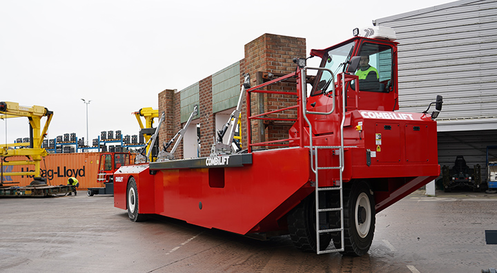 El COMBi-SPI, un vehículo totalmente eléctrico y autopropulsado, fue elogiado por su capacidad para transportar elementos de hormigón prefabricados de gran tamaño y grandes paneles de pared dentro de patios de producción y obras de construcción. Capaz de manejar con seguridad palés de hasta 30 toneladas de cargador, ofrece una visibilidad, agilidad y precisión mejoradas, ofreciendo una alternativa más segura y eficiente a los sistemas convencionales de camión y remolque.