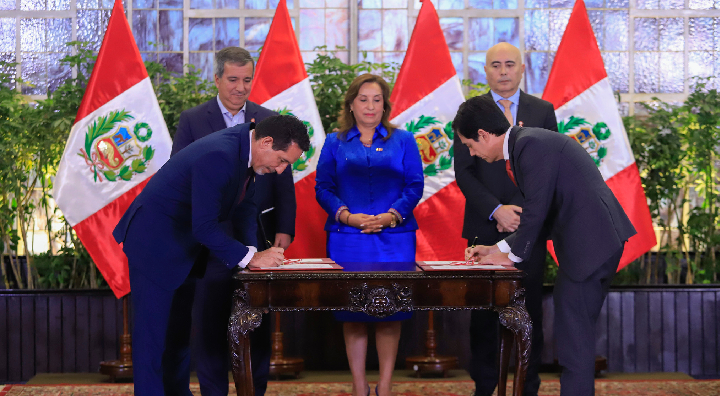 La ceremonia de firma se realizó en Palacio de Gobierno y contó con la participación de la presidenta de la República, Dina Boluarte; el ministro de Economía y Finanzas, Raúl Pérez Reyes; el ministro de Vivienda, Construcción y Saneamiento, Durich Whittembury; y el director ejecutivo de ProInversión, Luis Del Carpio.