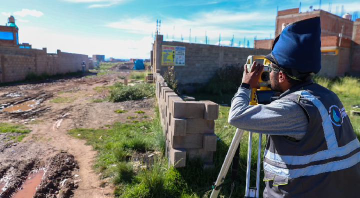 Los equipos técnicos están realizando levantamientos topográficos en distintos sectores de la ciudad, trabajos fundamentales para garantizar la correcta ejecución de las redes de agua potable y alcantarillado, así como para optimizar la planificación de las intervenciones en la vía pública.