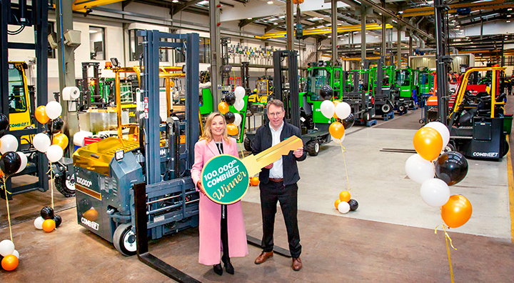 Para celebrar la producción de su carretilla elevadora número 100.000, Combilift lanzó su mayor concurso mundial hasta la fecha, ofreciendo el exclusivo premio número 100.000, la multidireccional Combi-CBE. Todos los beneficios recaudados se donaron al Fondo de Emergencia para la Infancia de UNICEF Irlanda.
