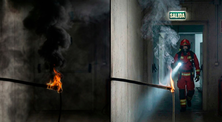 Los cables LSOH amplían el tiempo de evacuación mediante un triple mecanismo de protección: reducen la generación de humo, eliminan gases tóxicos y detienen la propagación del fuego. Esta combinación permite ganar minutos valiosos para evacuar o controlar el siniestro, salvaguardando a ocupantes y facilitando el trabajo de los bomberos.