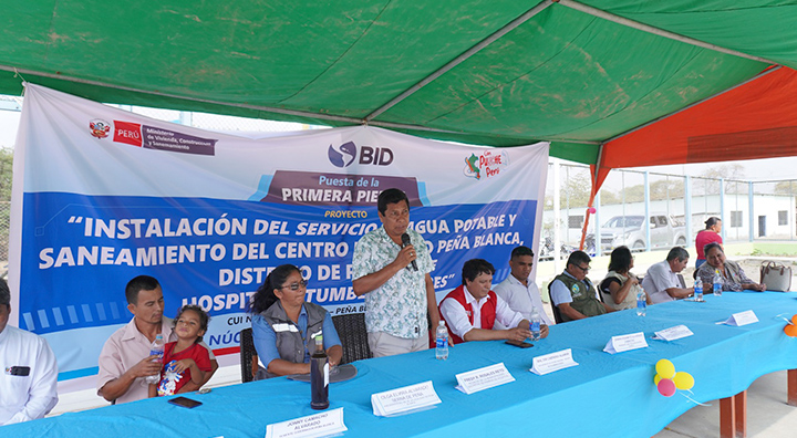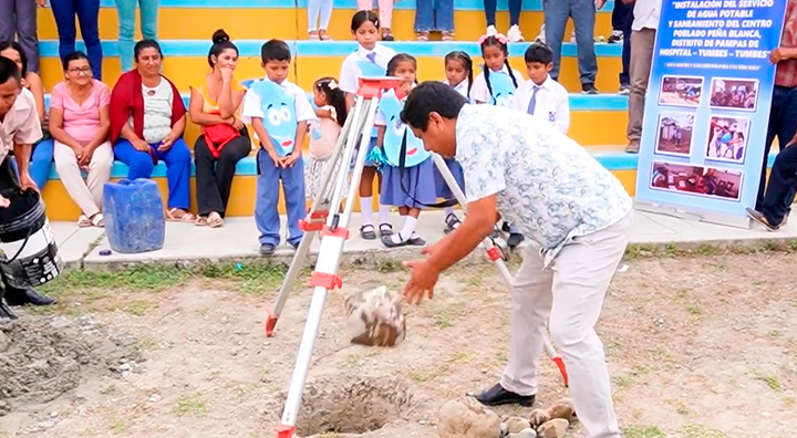 Con una inversión superior a los S/4,4 millones, el Ministerio de Vivienda, Construcción y Saneamiento (MVCS), a través del Programa Nacional de Saneamiento Rural (PNSR), inició la ejecución del proyecto de mejoramiento y ampliación de los servicios de agua potable y saneamiento en el centro poblado Peña Blanca, distrito de Pampas de Hospital, región Tumbes. La actividad se formalizó con la colocación de la primera piedra, marcando el comienzo de una intervención clave para la zona.