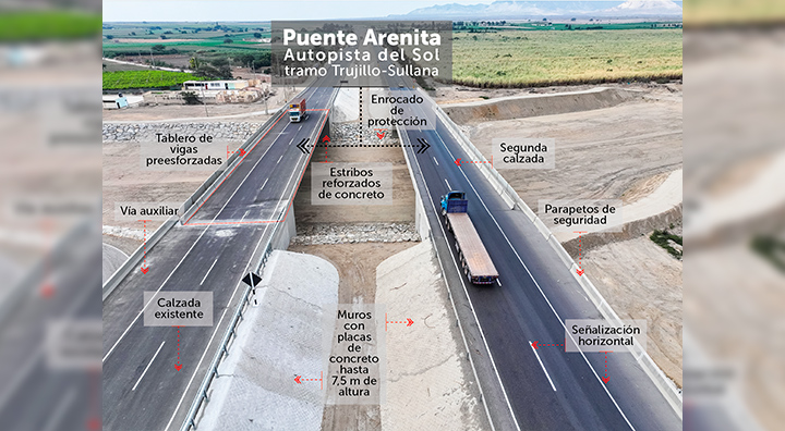 El Organismo Supervisor de la Inversión en Infraestructura de Transporte de Uso Público (Ositrán) supervisó la puesta en operación del puente Arenita ubicado a la altura del kilómetro 643 en el tramo Trujillo-Sullana de la Autopista del Sol en La Libertad.
