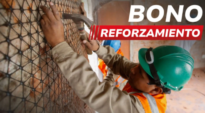 El bono reforzamiento es un apoyo económico gratuito que otorga el Estado a hogares en situación de pobreza o pobreza extrema con la finalidad de reforzar la estructura de un ambiente de sus viviendas. El valor del subsidio puede alcanzar hasta los S/ 22,600, de acuerdo con el tipo de intervención que requiera cada inmueble.