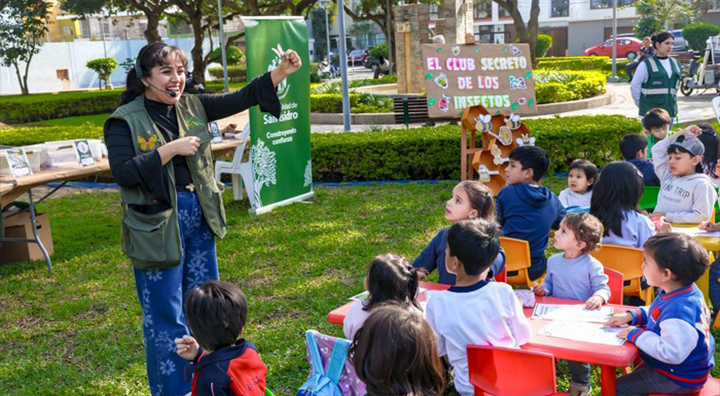 El Parque Villarán se convirtió en un verdadero laboratorio al aire libre, donde los asistentes observaron de cerca especies como el dragón barbudo, escarabajos, lombrices, abejas y un mariposario móvil. Los niños pudieron interactuar con ellas de manera responsable y respetuosa, guiados por expertos.