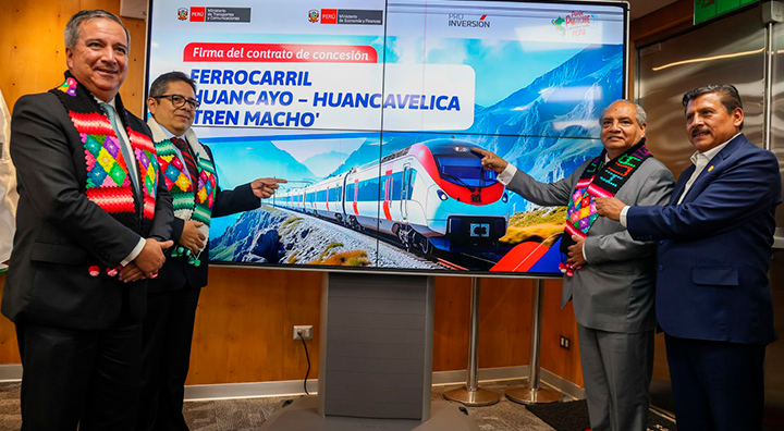 El ministro de Economía y Finanzas, Raúl Pérez Reyes, participó en la firma del contrato de concesión para la modernización del Ferrocarril Huancayo-Huancavelica, conocido históricamente como el Tren Macho, lo cual marca el inicio de la renovación de la infraestructura ferroviaria en las regiones Junín y Huancavelica, que beneficiará a más de 1.2 millones de peruanos.