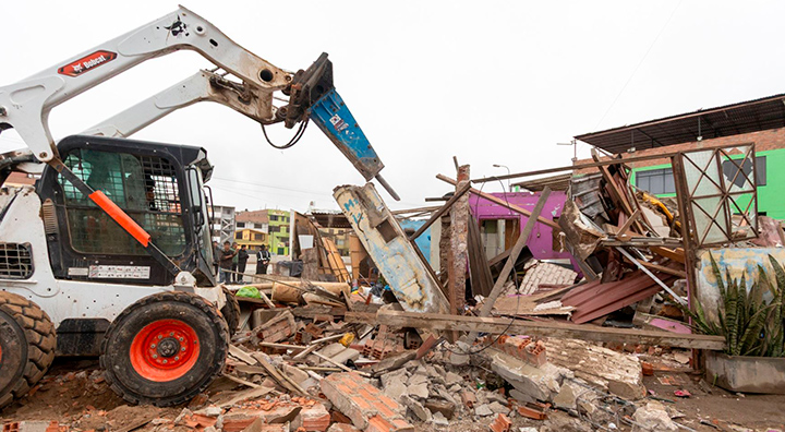 Con el empleo de maquinaria pesada, la Municipalidad de Santiago de Surco recuperó un espacio público de 750 metros cuadrados que estuvo ocupado por cinco construcciones ilegales por más de 20 años, en las inmediaciones de la avenida Paseo de la República, conocida como Vía Expresa Sur, y el jirón Jorge Chamot.